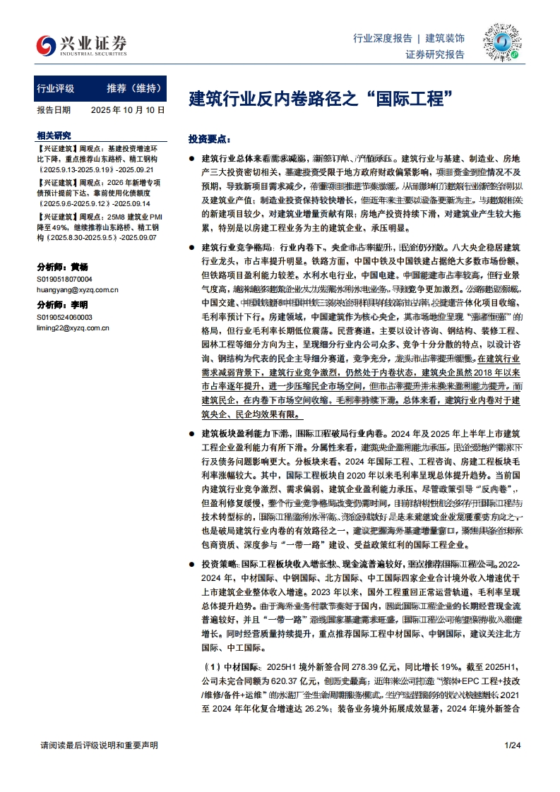 建筑装饰行业深度报告:建筑行业反内卷路径之“国际工程”