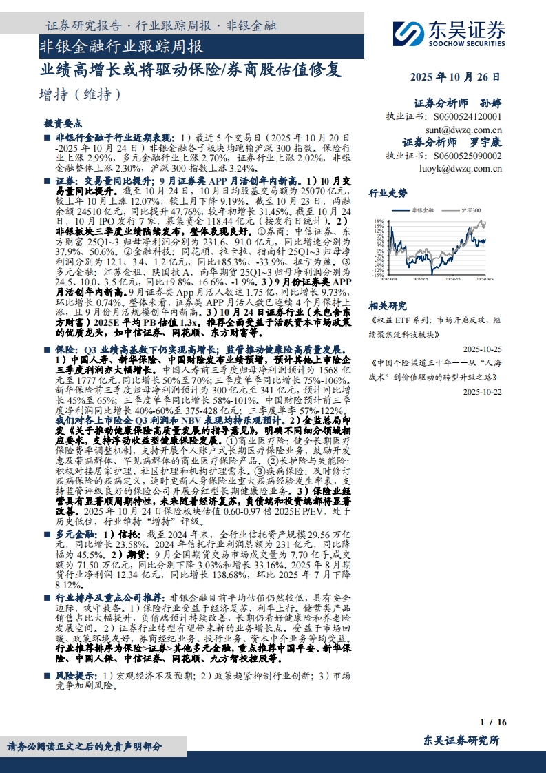 2025-10-26-东吴证券-非银金融行业跟踪周报:业绩高增长或将驱动保险-券商股估值修复