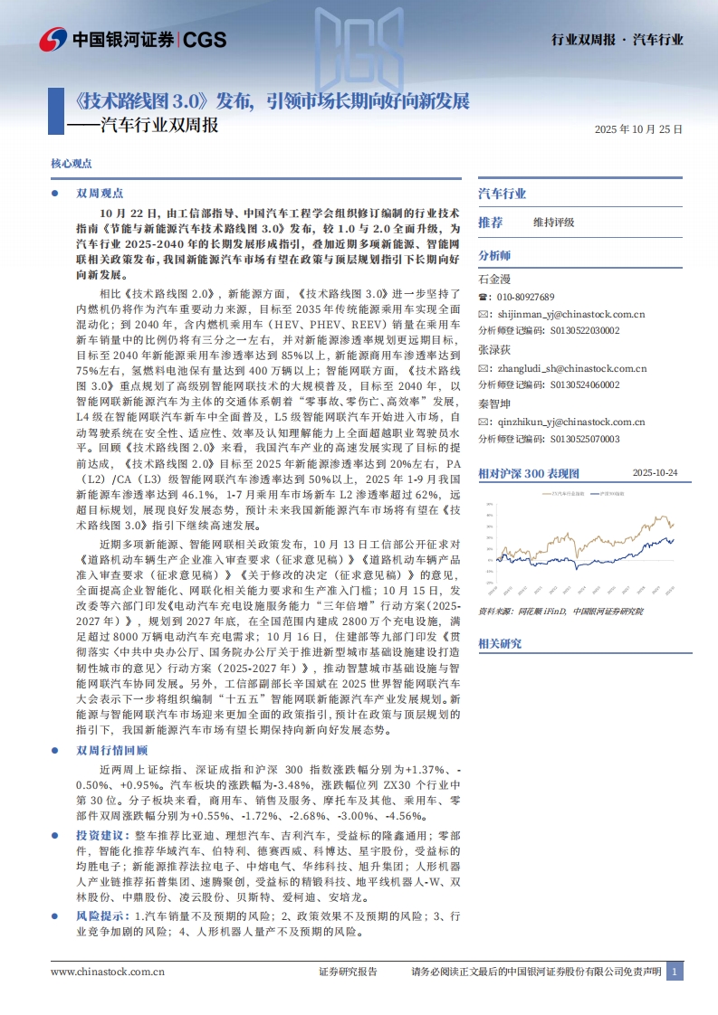 2025-10-27-中国银河--汽车行业双周报:《技术路线图3.0》发布,引领市场长期向好向新发展
