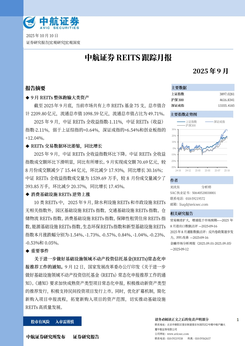 2025-10-29-中航证券-REITS跟踪月报2025年9月