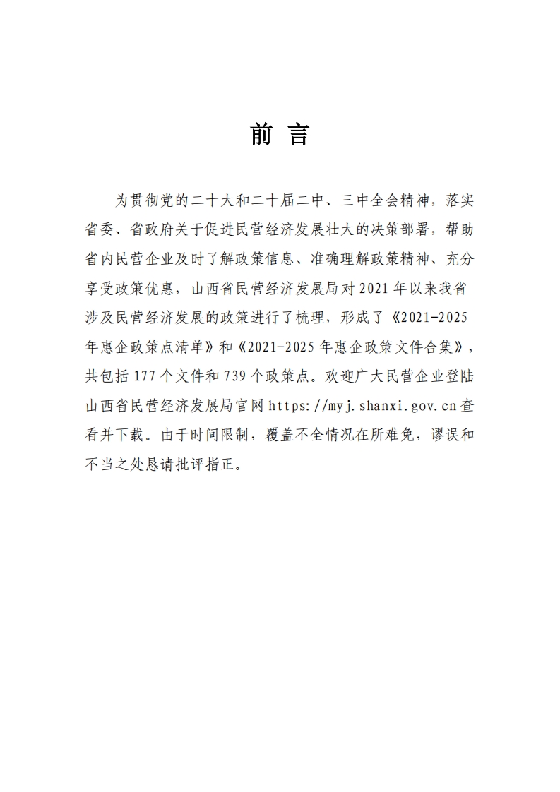 山西省民营经济发展局:2021-2025年惠企政策文件合集