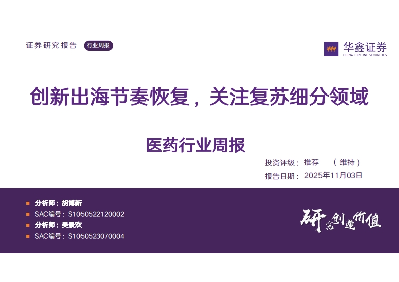 2025-11-03-华鑫证券-医药行业周报:创新出海节奏恢复,关注复苏细分领域