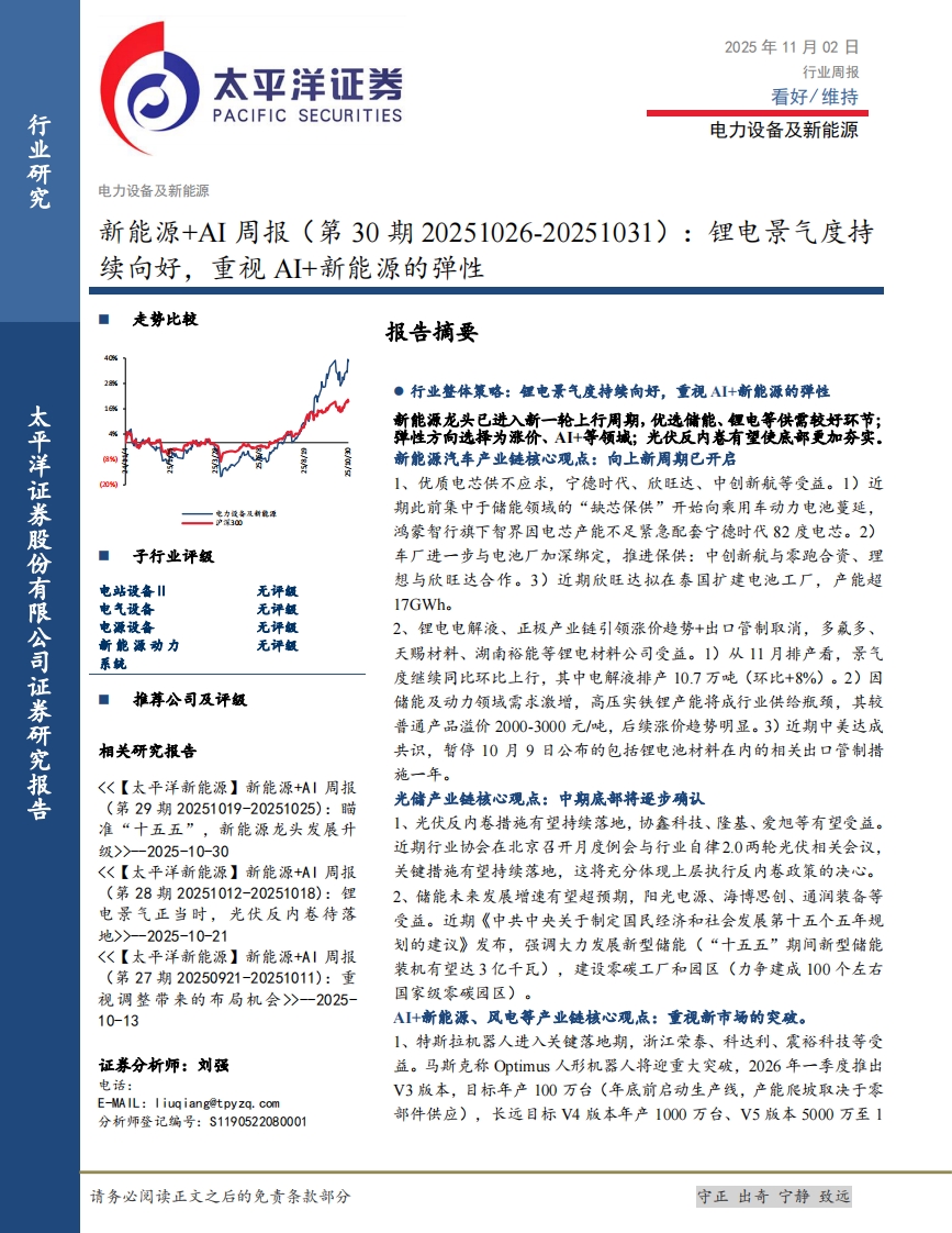 2025-11-03-太平洋--电力设备及新能源行业新能源+AI周报(第30期20251026-20251031):锂电景气度持续向好,重视AI+新能源的弹性