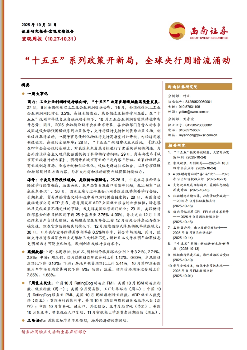 2025-11-03-西南证券-宏观周报:“十五五”系列政策开新局,全球央行周暗流涌动