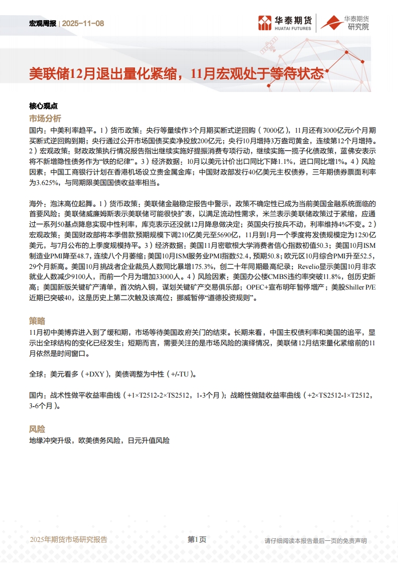 2025-11-10-华泰期货-宏观周报:美联储12月退出量化紧缩,11月宏观处于等待状态