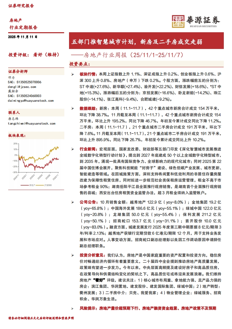 2025-11-11-华源证券-房地产行业周报:五部门推智慧城市计划,新房及二手房成交走弱