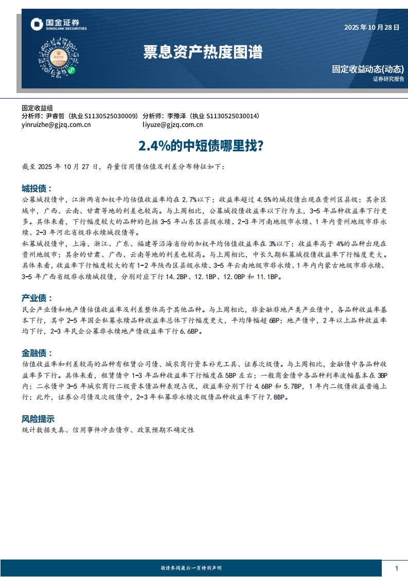 2025-11-11-国金证券:票息资产热度图谱:2.4%的中短债哪里找