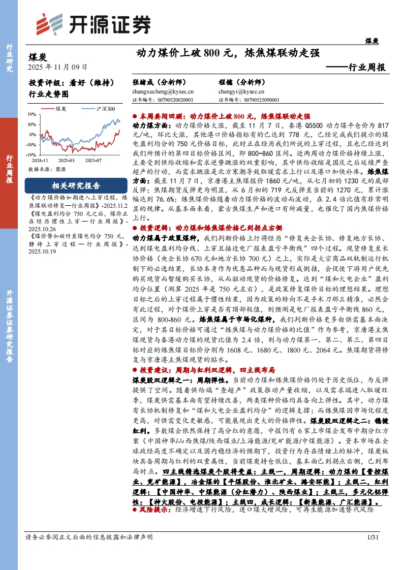2025-11-10-开源证券--煤炭行业周报:动力煤价上破800元,炼焦煤联动走强