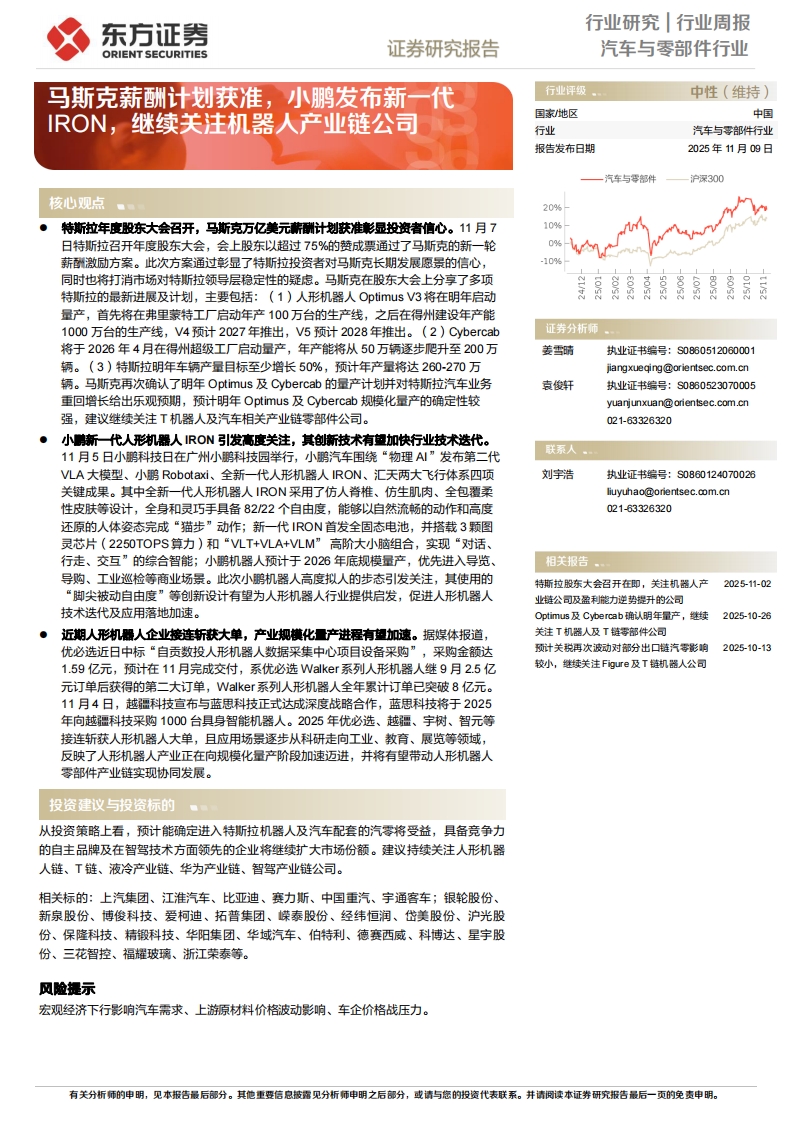 2025-11-15-东方证券:马斯克薪酬计划获准,小鹏发布新一代IRON,继续关注机器人产业链公司