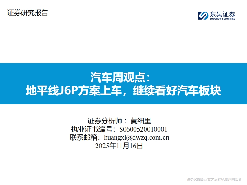 2025-11-17-东吴证券--汽车周观点:地平线J6P方案上车,继续看好汽车板块
