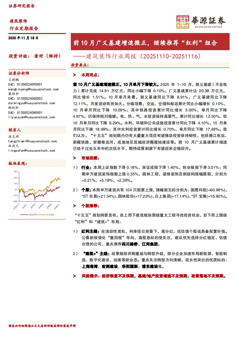2025-11-18-华源证券--建筑装饰行业周报:前10月广义基建增速微正,继续推荐“红利”组合