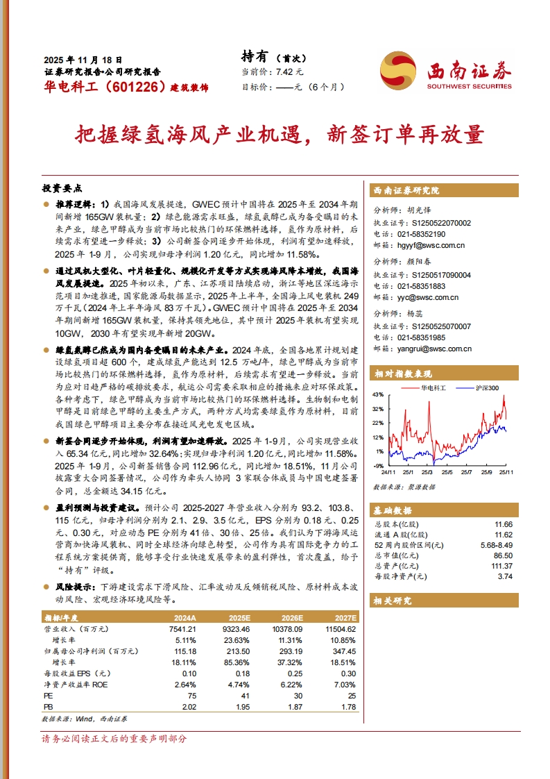 2025-11-20-西南证券-华电科工-把握绿氢海风产业机遇,新签订单再放量