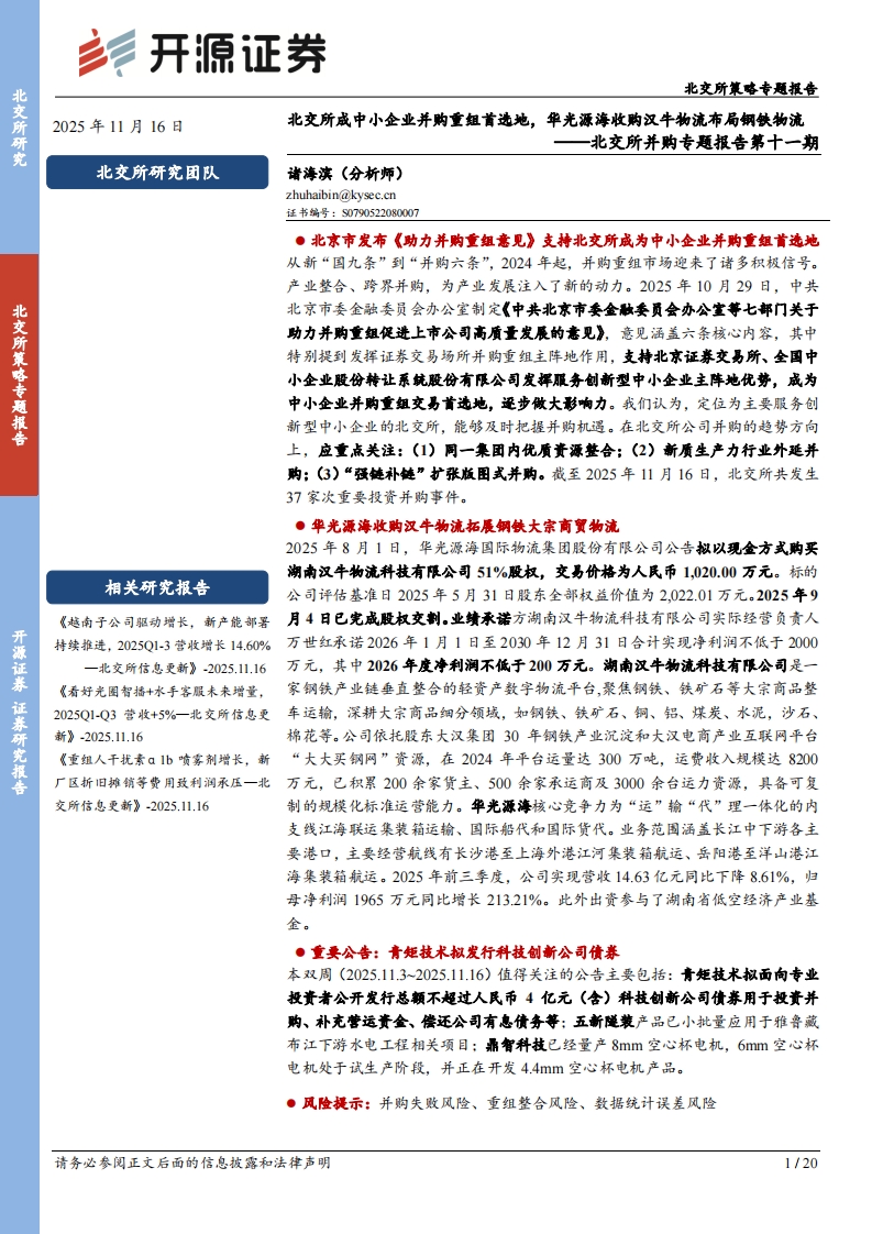 2025-11-26-开源证券:北交所并购专题报告第十一期:北交所成中小企业并购重组首选地,华光源海收购汉牛物流布局钢铁物流