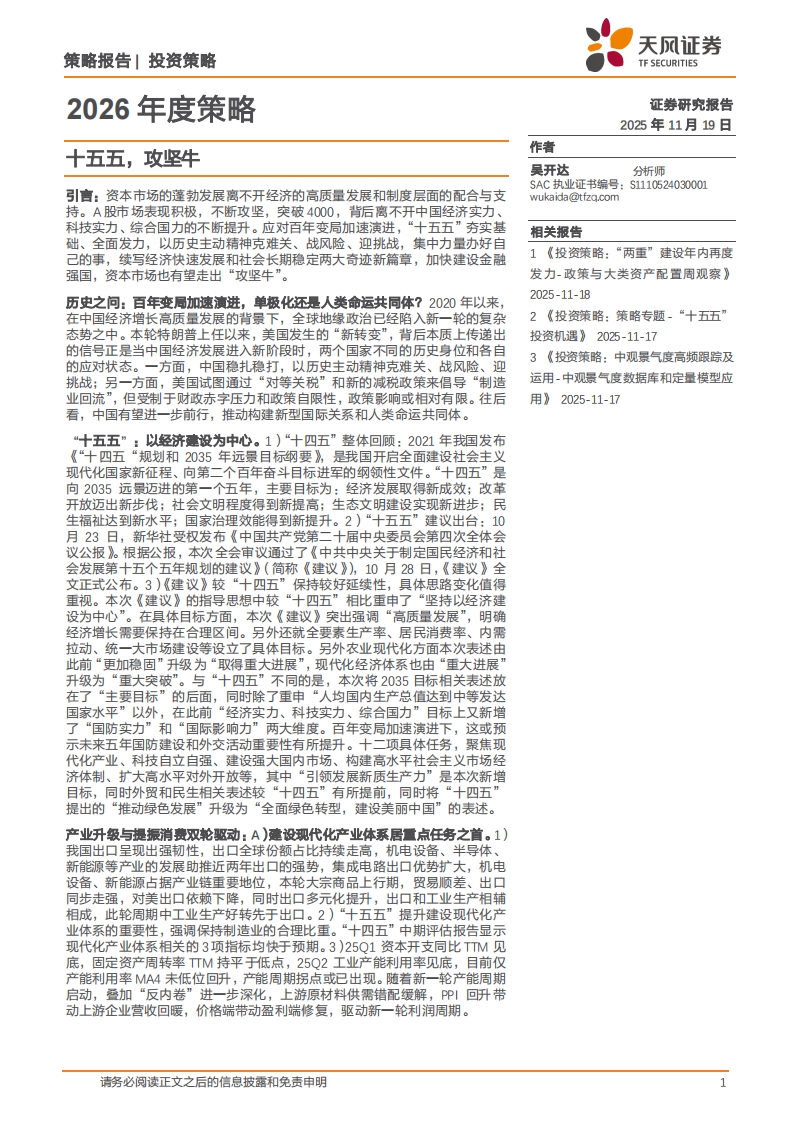 2025-11-26-天风证券:2026年度策略:十五五,攻坚牛