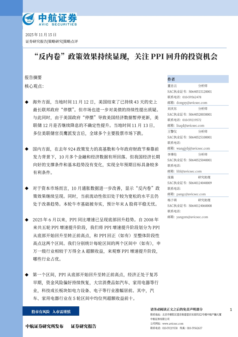 2025-11-26-中航证券:策略点评:“反内卷”政策效果持续显现,关注PPI回升的投资机会