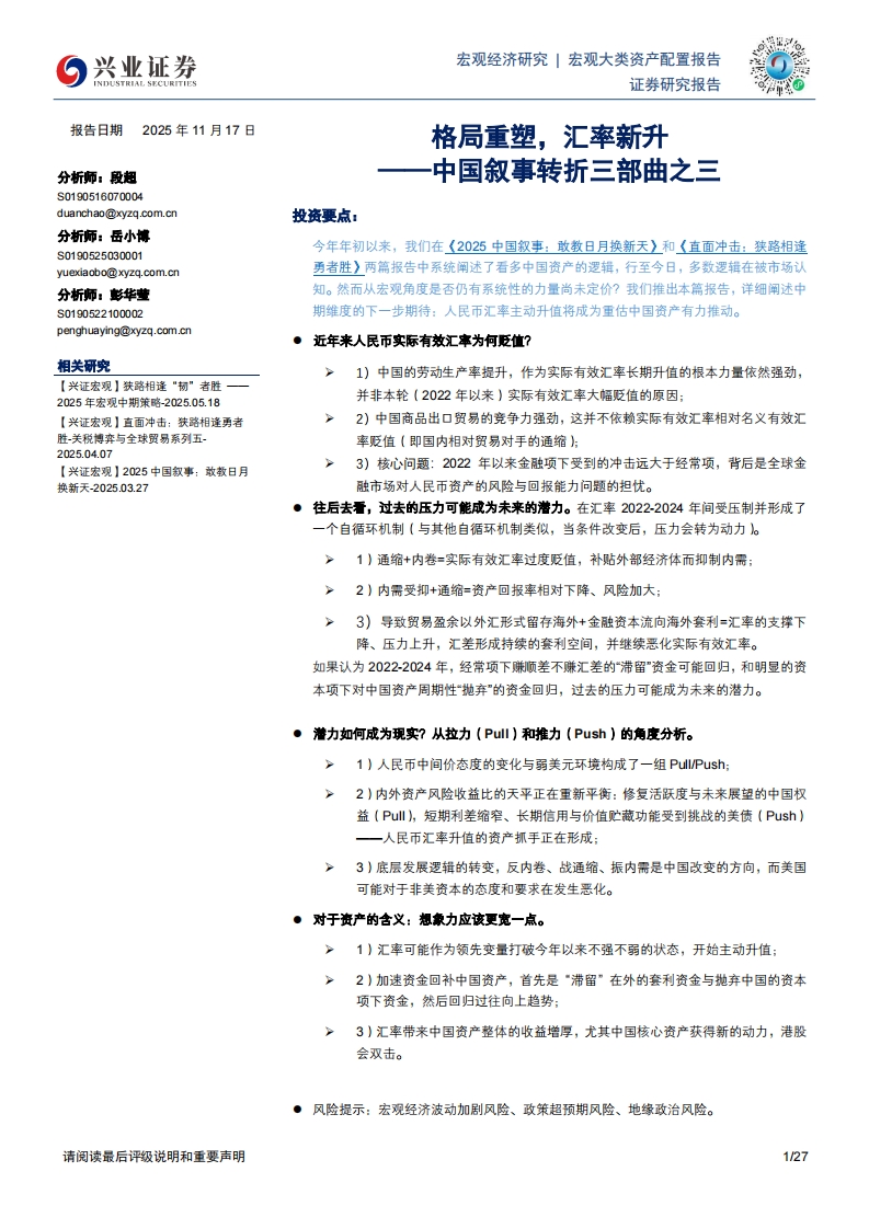 中国叙事转折三部曲之三:格局重塑,汇率新升