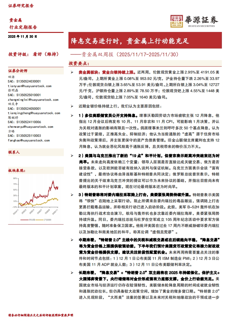 2025-11-30-华源证券-贵金属双周报:降息交易进行时,贵金属上行动能充足
