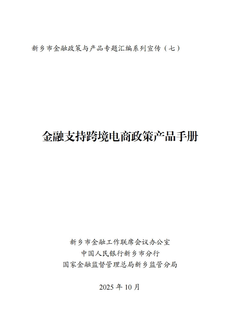 新乡市金融支持跨境电商政策产品手册