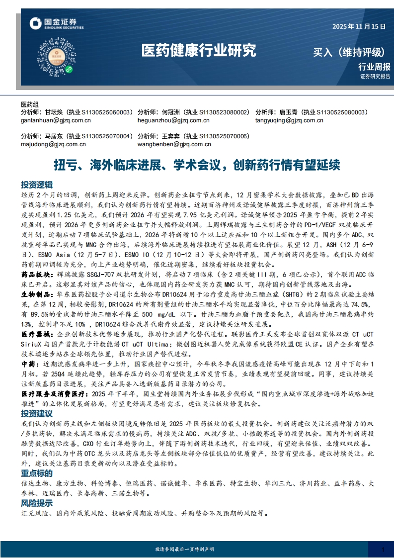 2025-12-01-国金证券:医药健康行业研究:扭亏、海外临床进展、学术会议,创新药行情有望延续 (2)