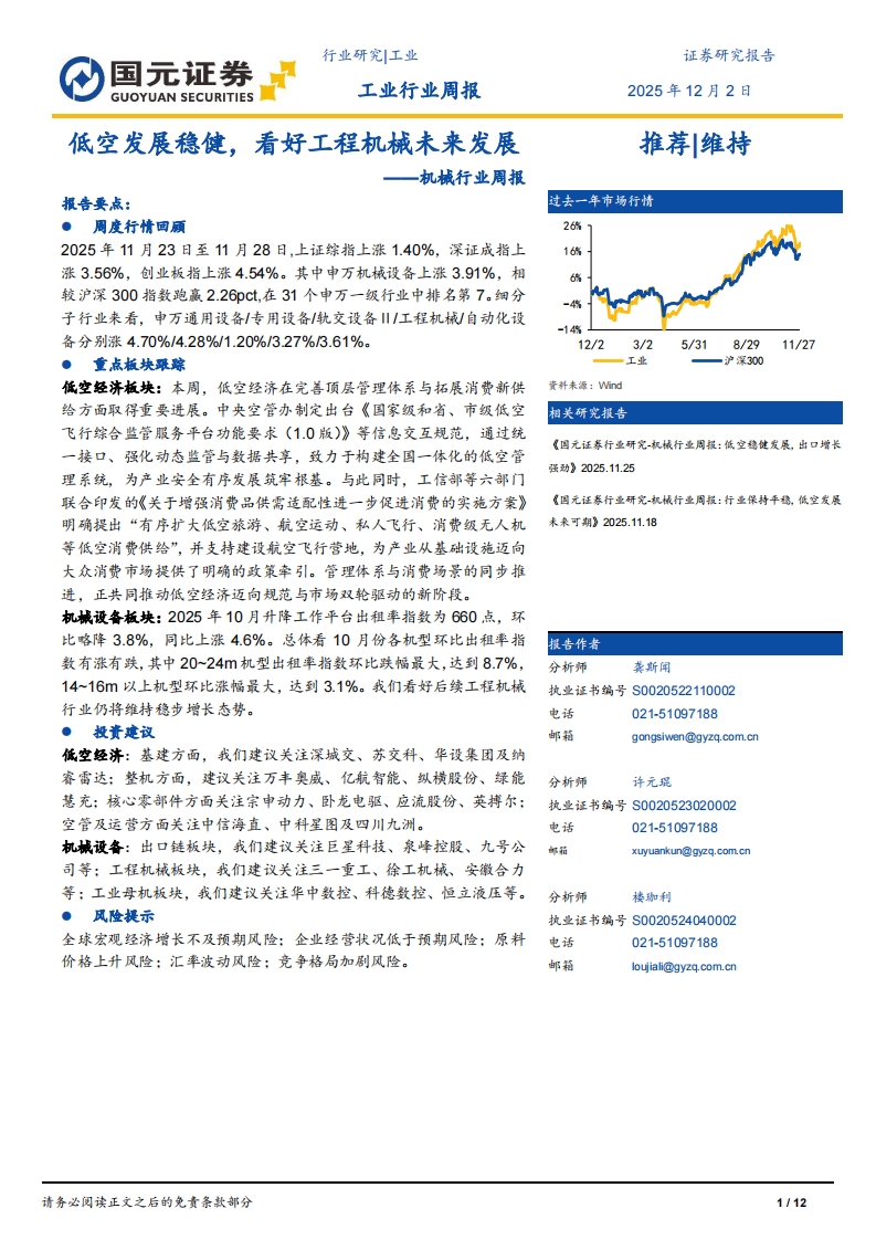 2025-12-02-国元证券--机械行业周报:低空发展稳健,看好工程机械未来发展