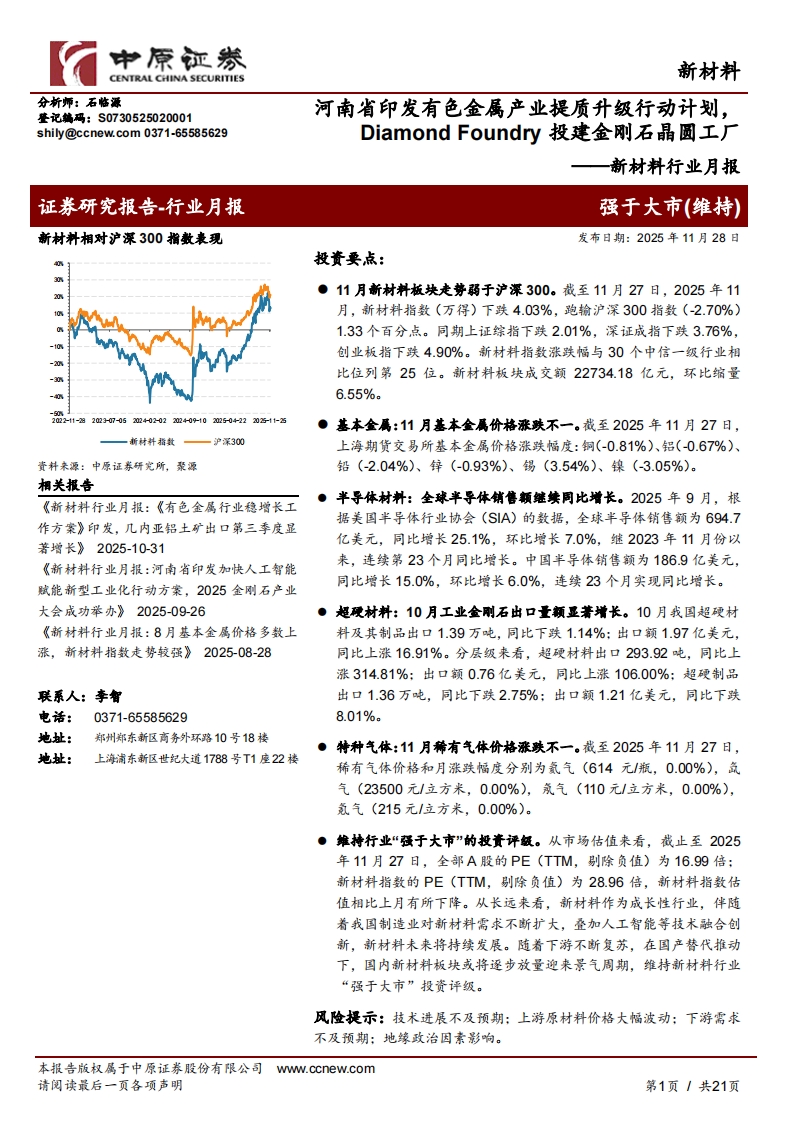 2025年12月07日更新-【中原证券】新材料行业月报:河南省印发有色金属产业提质升级行动计划,Diamond+Foundry投建金刚石晶圆工厂