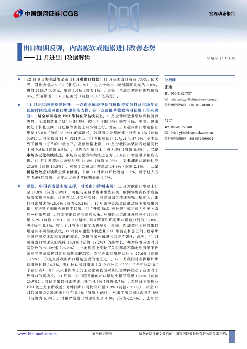 2025-12-08-中国银河-11月进出口数据解读:出口如期反弹,内需疲软或拖累进口改善态势