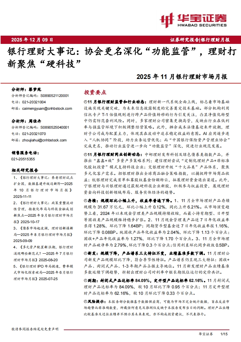 2025-12-09-华宝证券--2025年11月银行理财市场月报:银行理财大事记:协会更名深化“功能监管”,理财打新聚焦“硬科技”