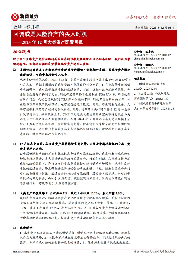 2025年12月09日更新-【浙商证券】2025年12月大类资产配置月报:回调或是风险资产的买入时机