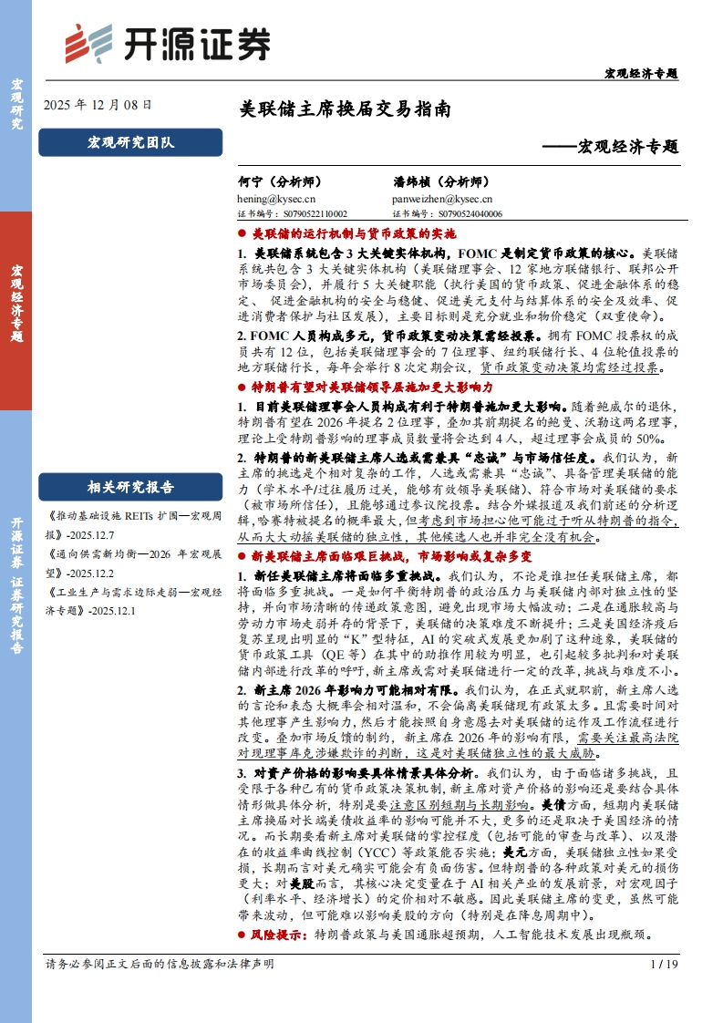 2025-12-09-开源证券-宏观经济专题:美联储主席换届交易指南
