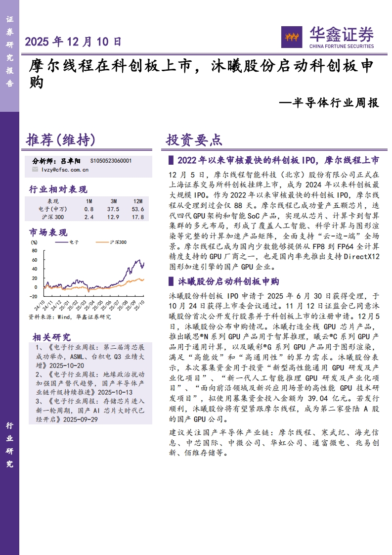2025-12-11-华鑫证券--半导体行业周报:摩尔线程在科创板上市,沐曦股份启动科创板申购