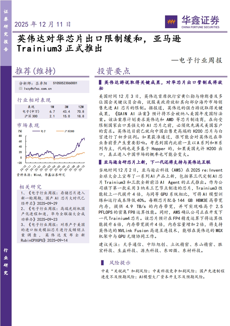2025-12-11-华鑫证券--电子行业周报:英伟达对华芯片出口限制缓和,亚马逊Trainium3正式推出