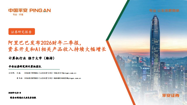 2025-12-14-平安证券:计算机行业:阿里巴巴发布2026财年二季报,资本开支和AI相关产品收入持续大幅增长