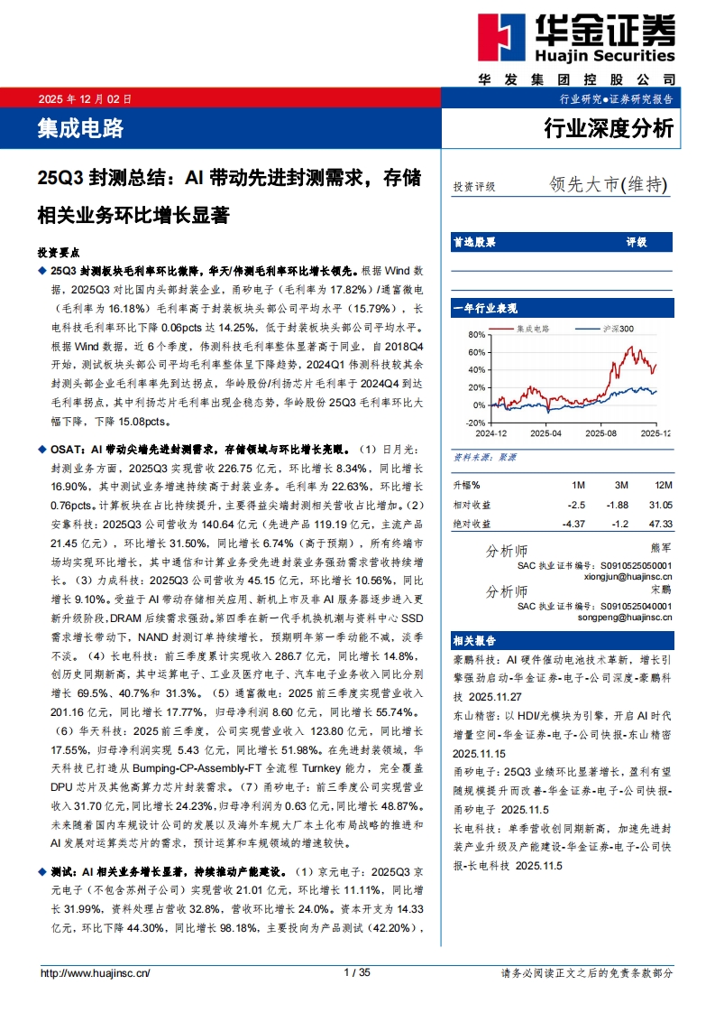 2025-12-14-华金证券:集成电路行业25Q3封测总结:AI带动先进封测需求,存储相关业务环比增长显著