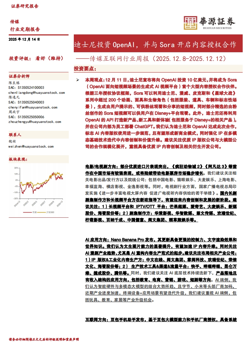 2025-12-14-华源证券-传媒互联网行业周报:迪士尼投资OpenAI,并与Sora开启内容授权合作