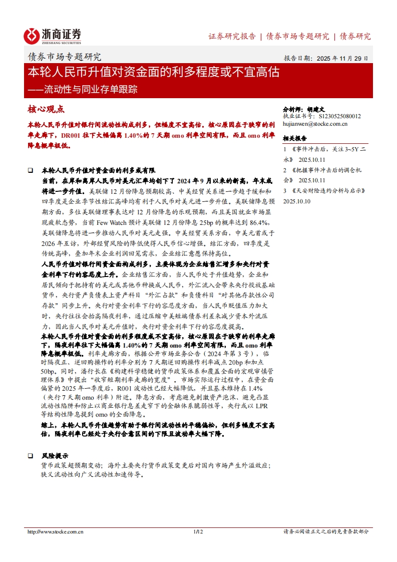 2025-12-15-浙商证券:流动性与同业存单跟踪:本轮人民币升值对资金面的利多程度或不宜高估