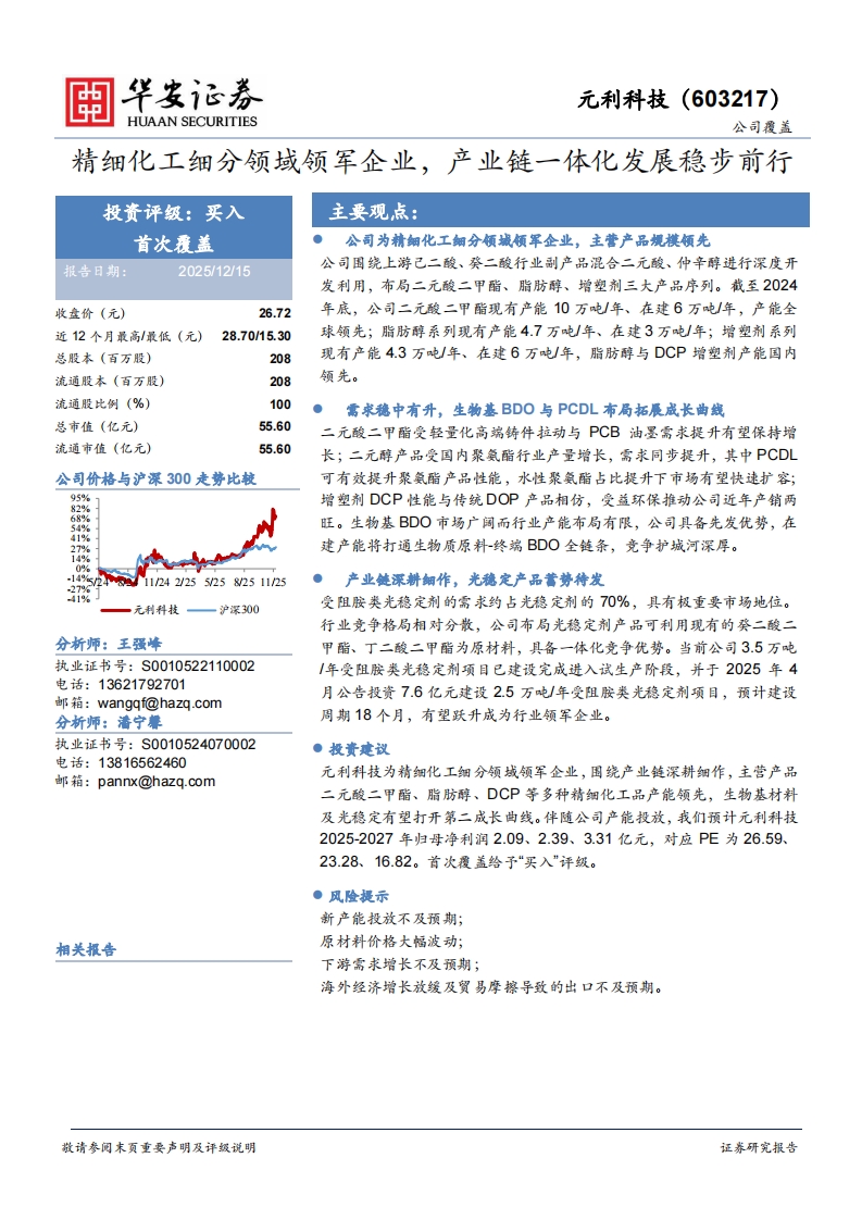 2025-12-16-华安证券-元利科技-精细化工细分领域领军企业,产业链一体化发展稳步前行