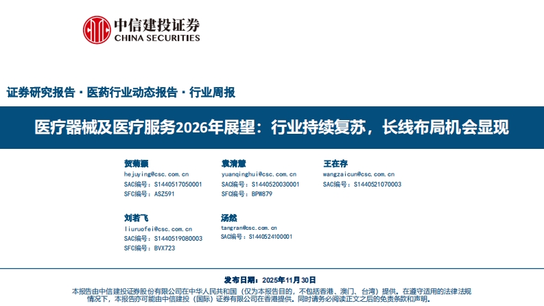 2025-12-16-中信建投:医疗器械及医疗服务行业2026年展望:行业持续复苏,长线布局机会显现