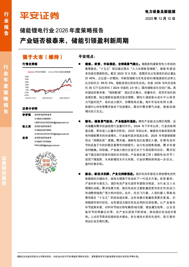 2025年12月18日更新-【平安证券】储能锂电行业2026年度策略报告:产业链否极泰来,储能引领盈利新周期
