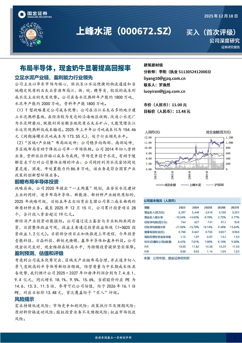 2025-12-19-国金证券-上峰水泥-布局半导体,现金奶牛显著提高回报率