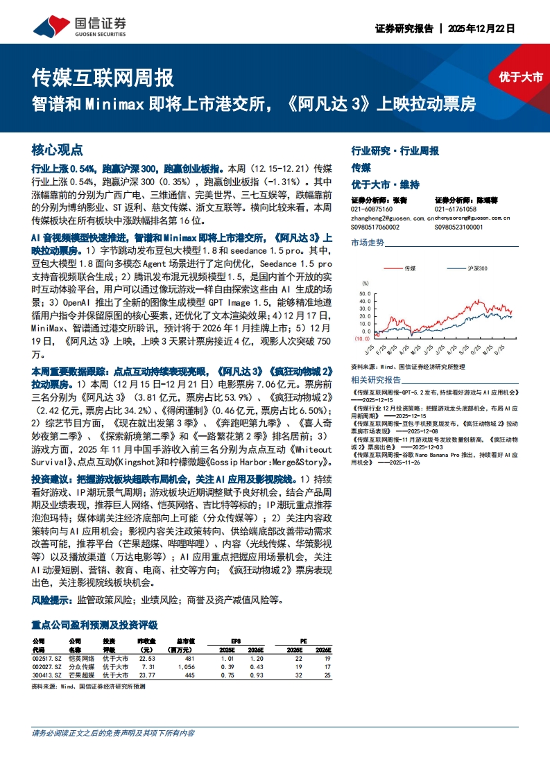 2025-12-22-国信证券-传媒互联网行业周报:智谱和Minimax即将上市港交所,《阿凡达3》上映拉动票房