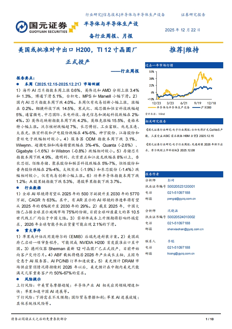 2025-12-22-国元证券--半导体与半导体生产设备行业周报:美国或批准对中出口H200,TI 12寸晶圆厂正式投产