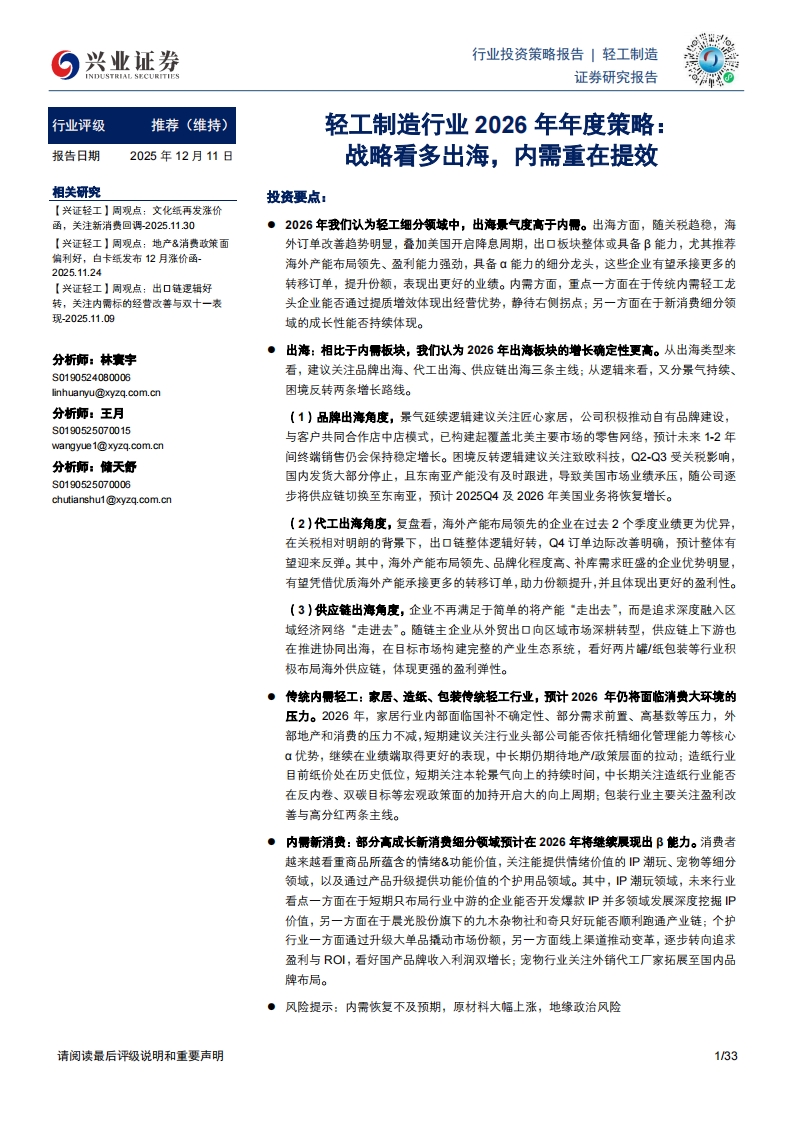 轻工制造行业2026年年度策略:战略看多出海,内需重在提效