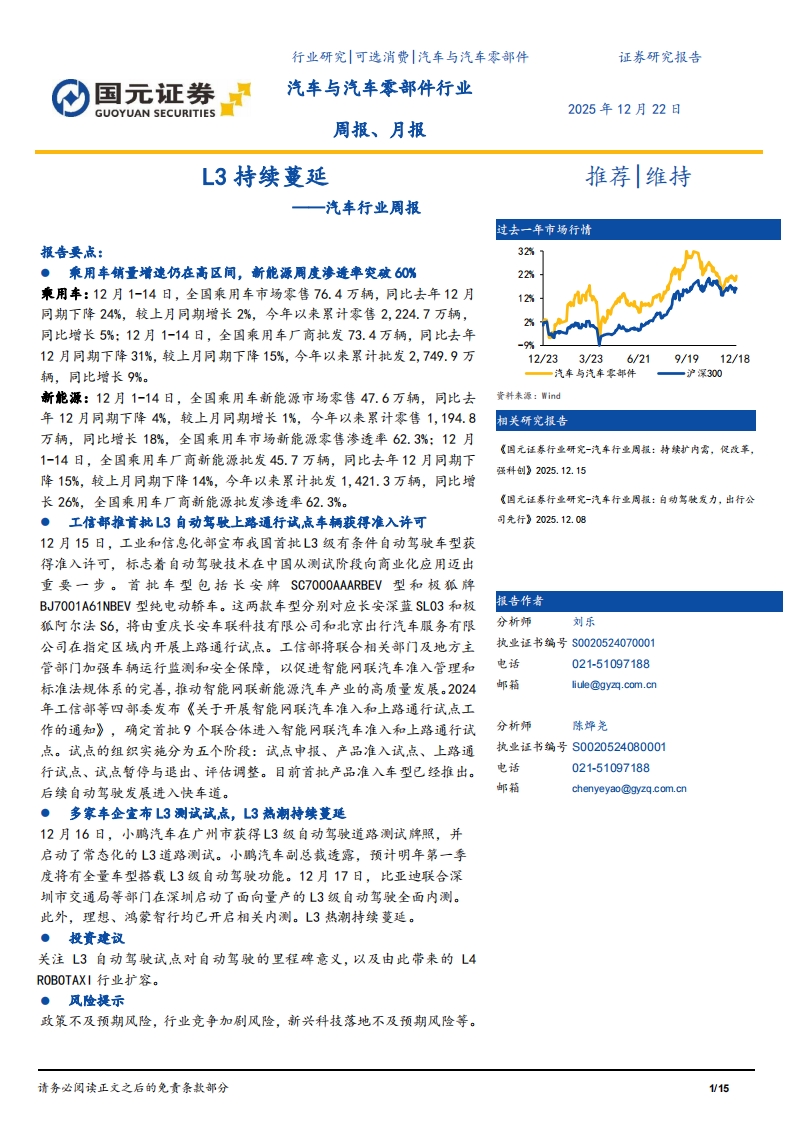 2025-12-23-国元证券--汽车行业周报:L3持续蔓延
