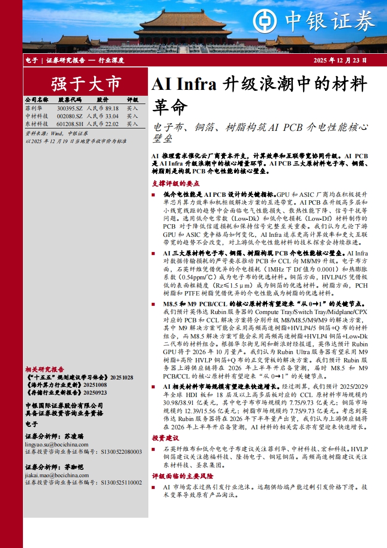 2025-12-23-中银证券--AI Infra升级浪潮中的材料革命:电子布、铜箔、树脂构筑AI PCB介电性能核心壁垒