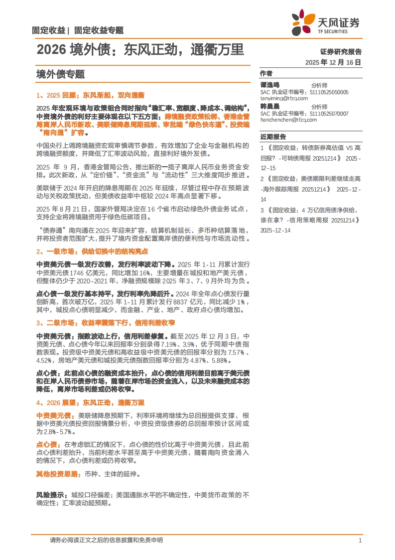2025-12-27-天风证券:境外债专题:2026境外债,东风正劲,通衢万里