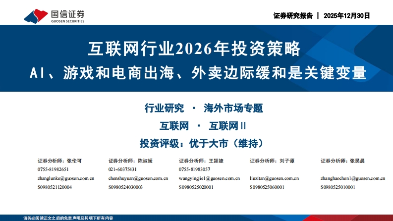 2025-12-31-国信证券--互联网行业2026年投资策略:AI、游戏和电商出海、外卖边际缓和是关键变量