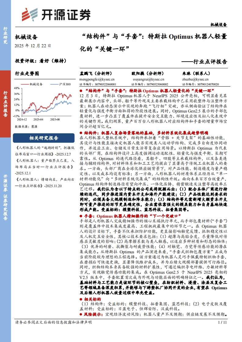 2026-01-02-开源证券:机械设备行业点评报告:“结构件”与“手套”,特斯拉Optimus机器人轻量化的“关键一环”