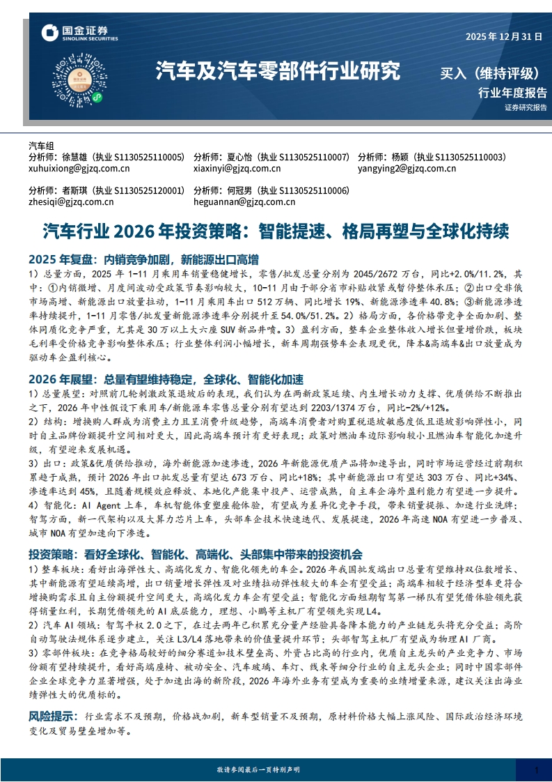 2026-01-04-国金证券:汽车行业2026年投资策略:智能提速、格局再塑与全球化持续