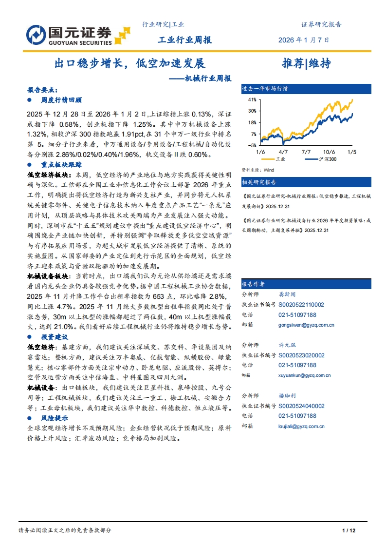 2026-01-07-国元证券--机械行业周报:出口稳步增长,低空加速发展