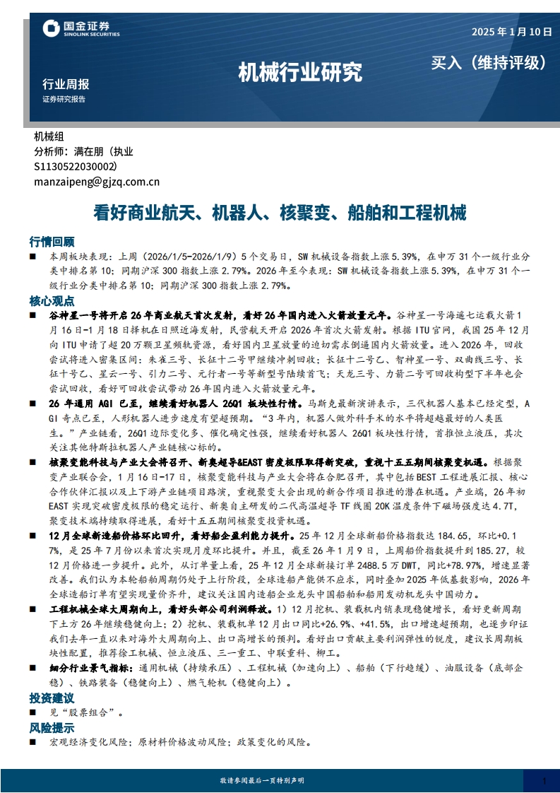 2026-01-11-国金证券--机械行业研究:看好商业航天、机器人、核聚变、船舶和工程机械